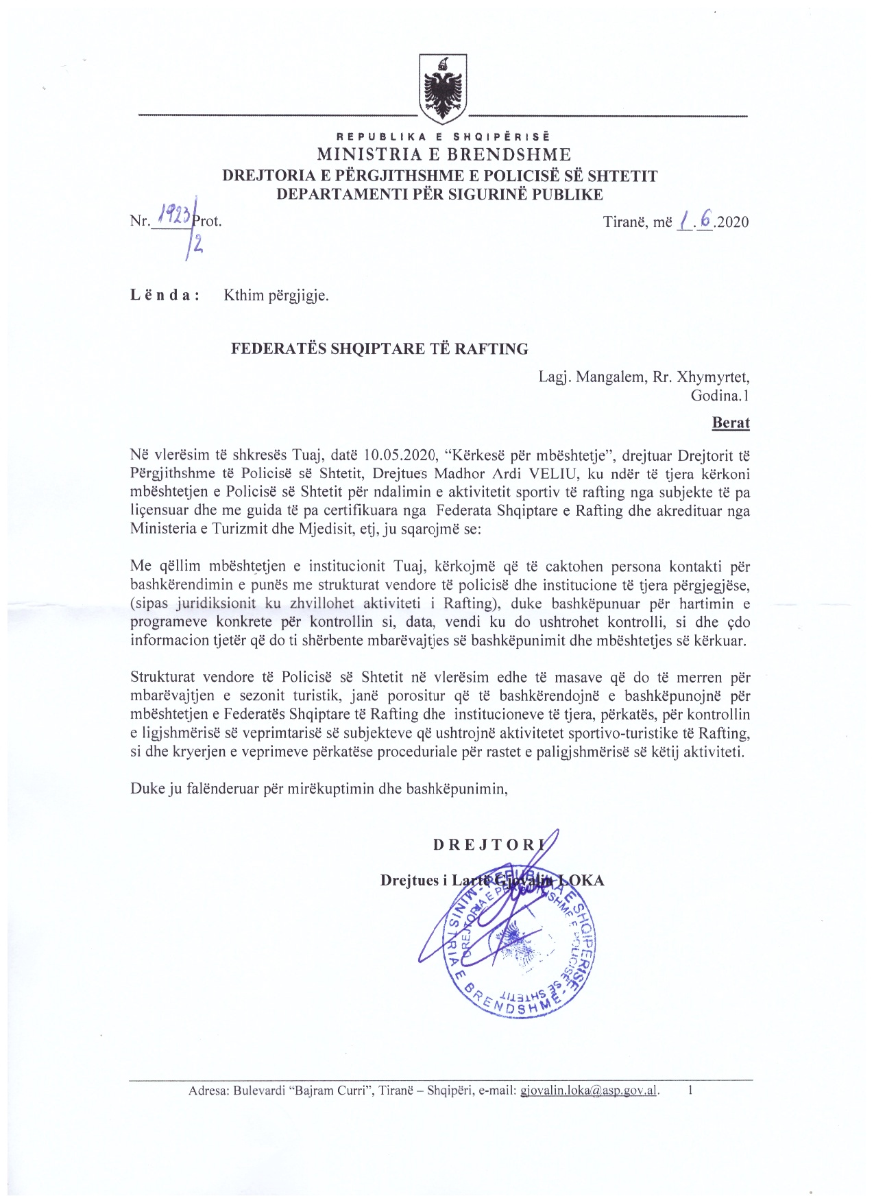 Federata Shqiptare e Rafting ka bërë përpjekje të vazhdueshme duke njoftuar dhe raportuar në institucionet përkatëse (Ministrin e Turizmit dhe Mjedisit, Drejtorin e Pergjithëshme të Policisë, Agjencia kombëtare e bregdetit) për subjekte tashmë të evidentuar dhe fakeqësisht ende nuk ka pasur një bashkëpunim frytdhënës.