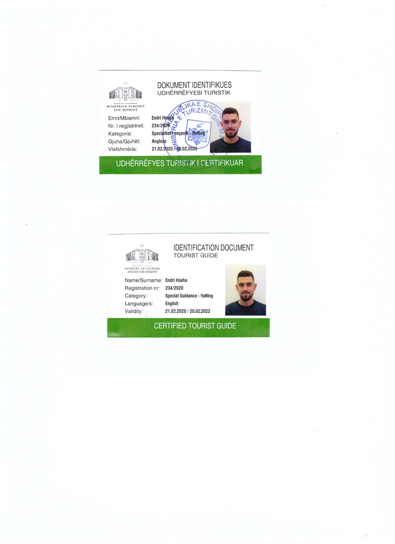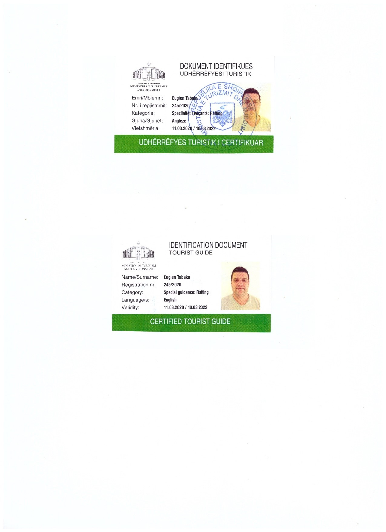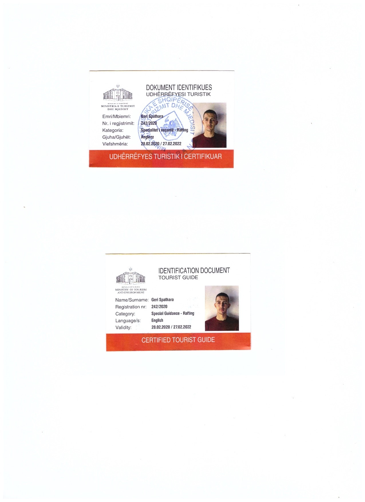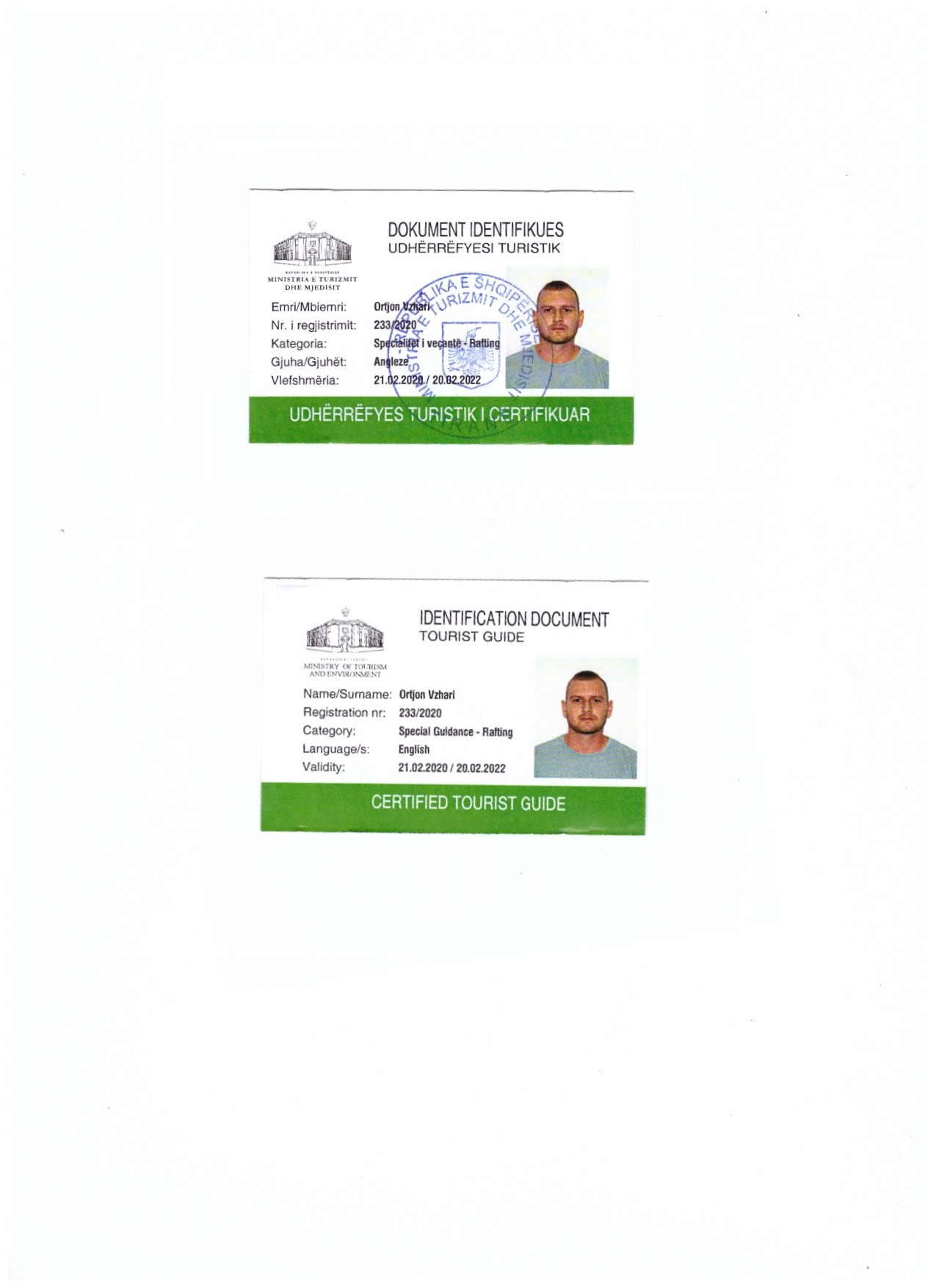 Coach & GuideCertified rafting guide from the Albanian Rafting Federation and the Ministry of Tourism and Environment.