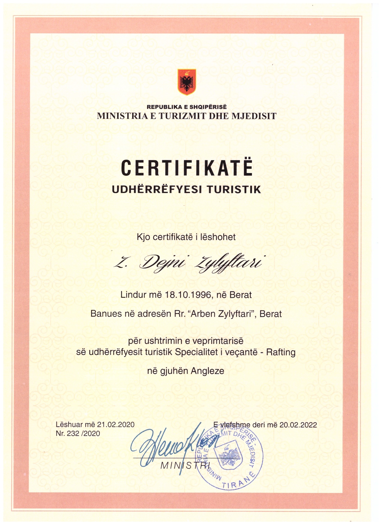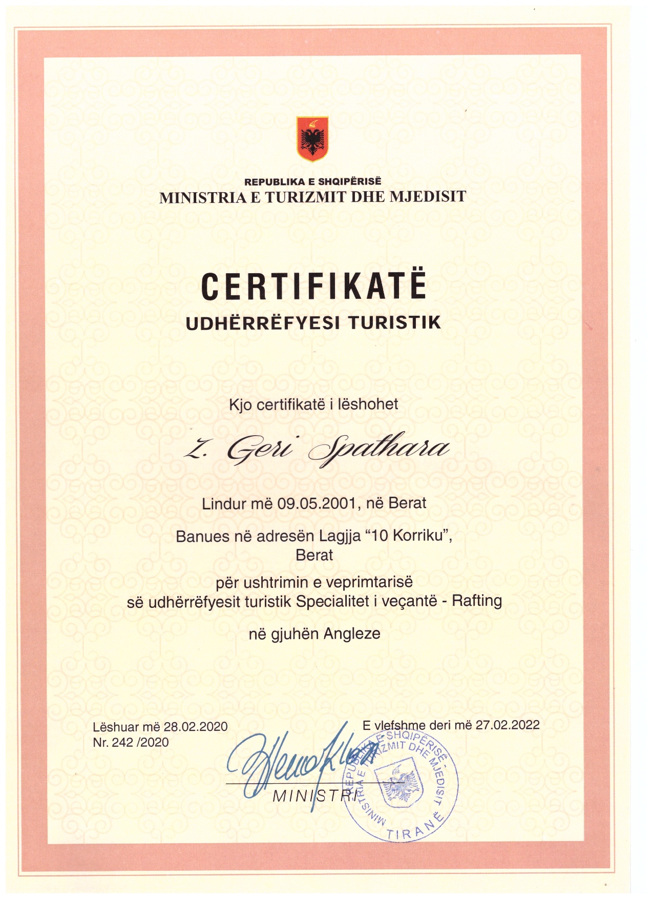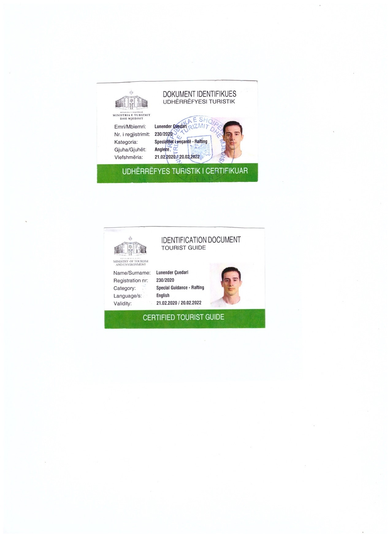 Coach & GuideCertified rafting guide from the Albanian Rafting Federation and the Ministry of Tourism and Environment.